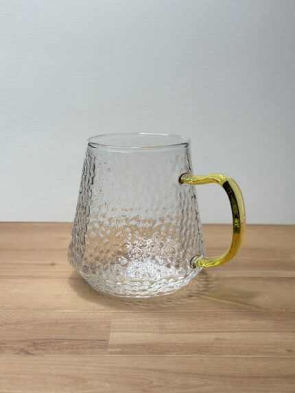 Tetera color ámbar de vidirio borosilicato tallado. Tapa hermética de bambú. Filtro desmontable de fácil limpieza.