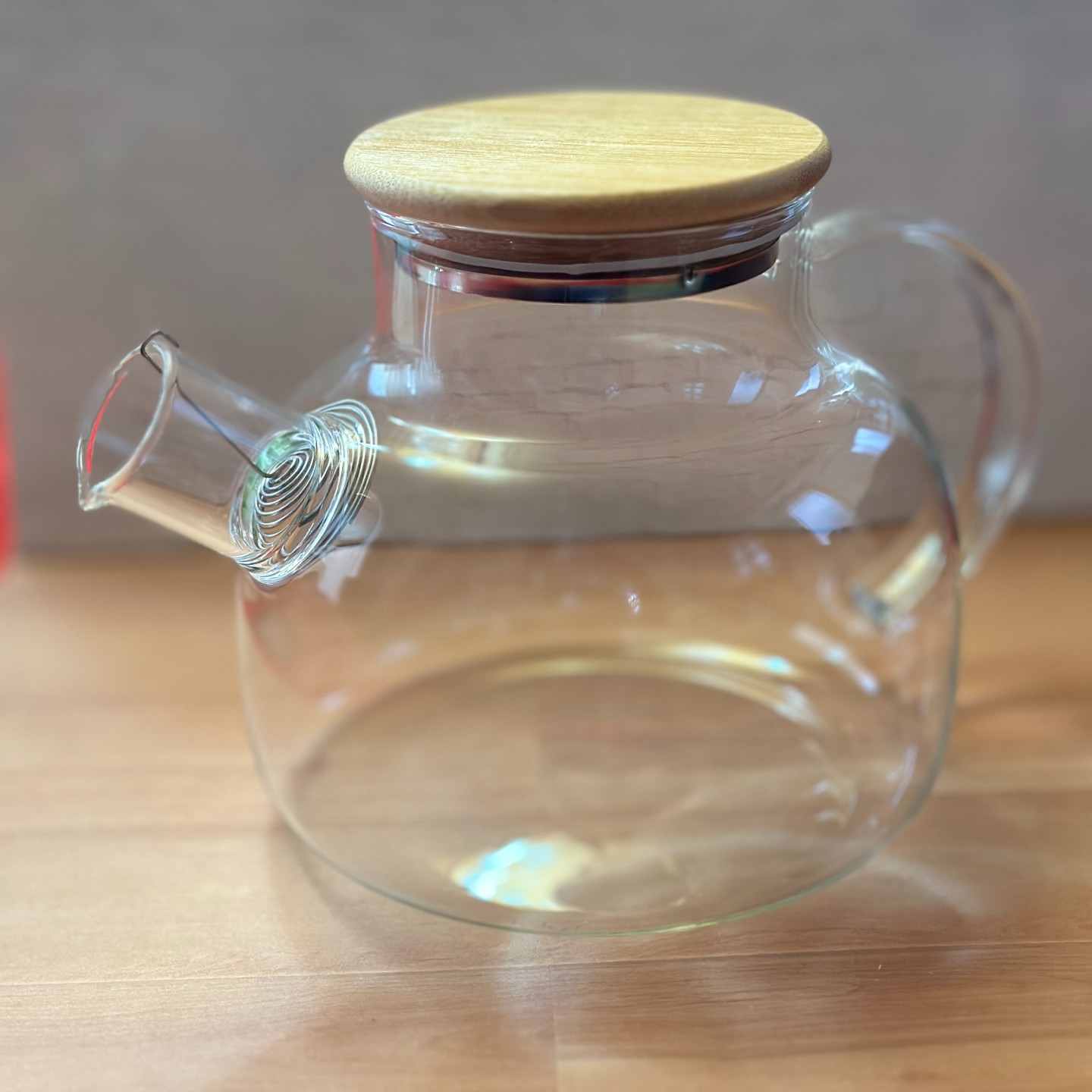 Tetera de borosilicato con tapa de bambú y filtro desmontable en el gollete